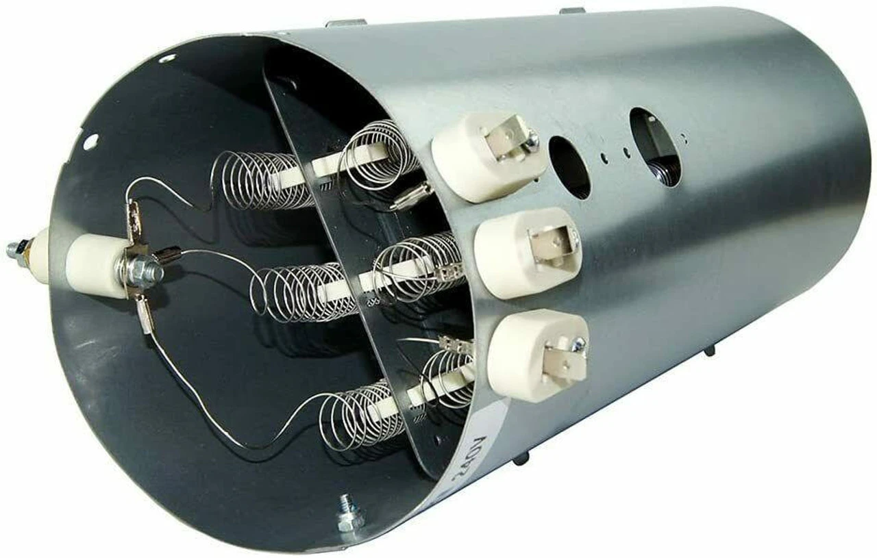 - 240 Volt 5500 Watts 3 coil element with housing. 12-3/4″ Long,5/16″ Male Connectors.
