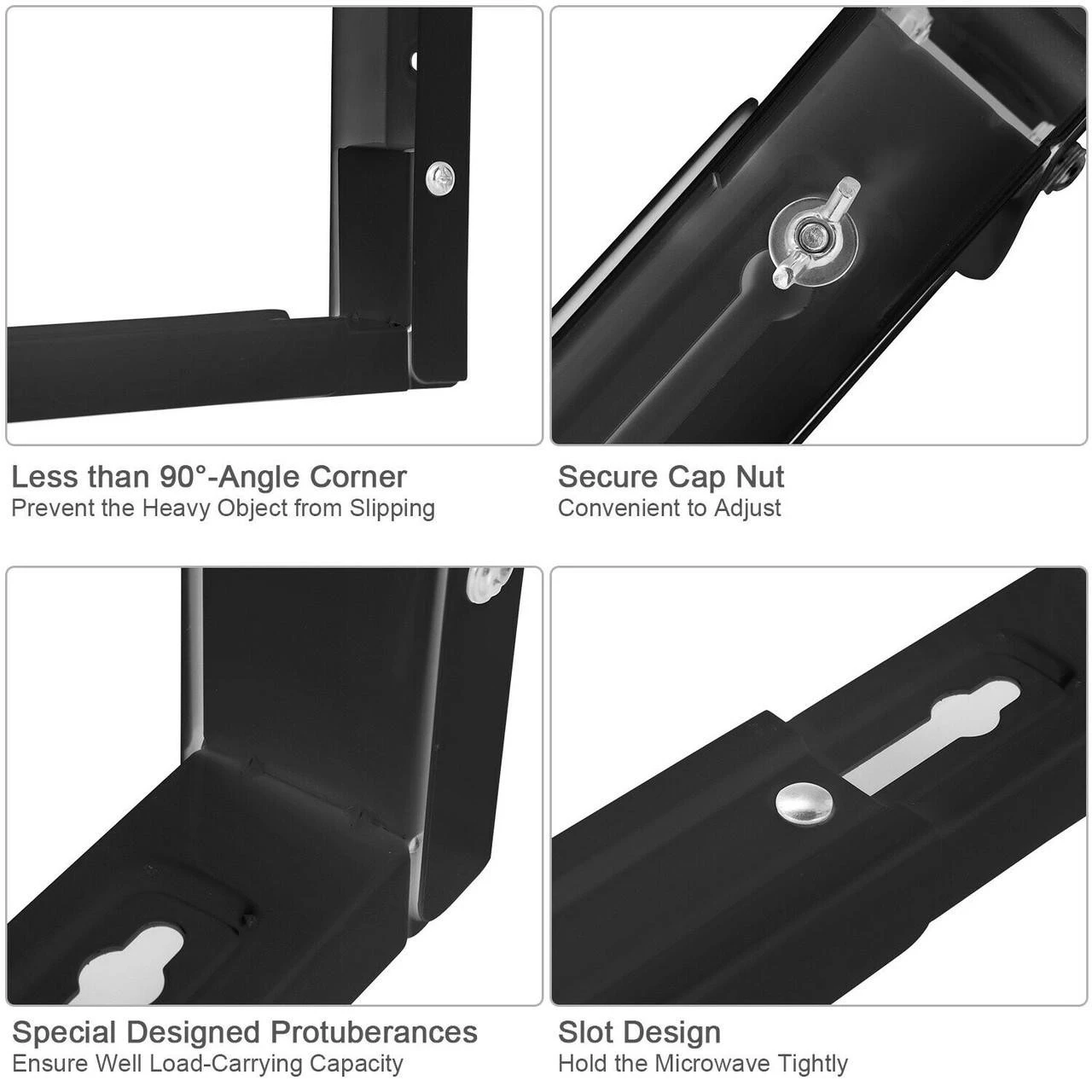- Durable and Well Load-Carrying Capacity:Adopting heavy-duty carbon steel materials and premium painting treatment process on its surface,our microwave bracket is sturdy,durable and not easy to rust. Besides,designed as L shape,it can bear more than 35kg/77lbs-weight items.