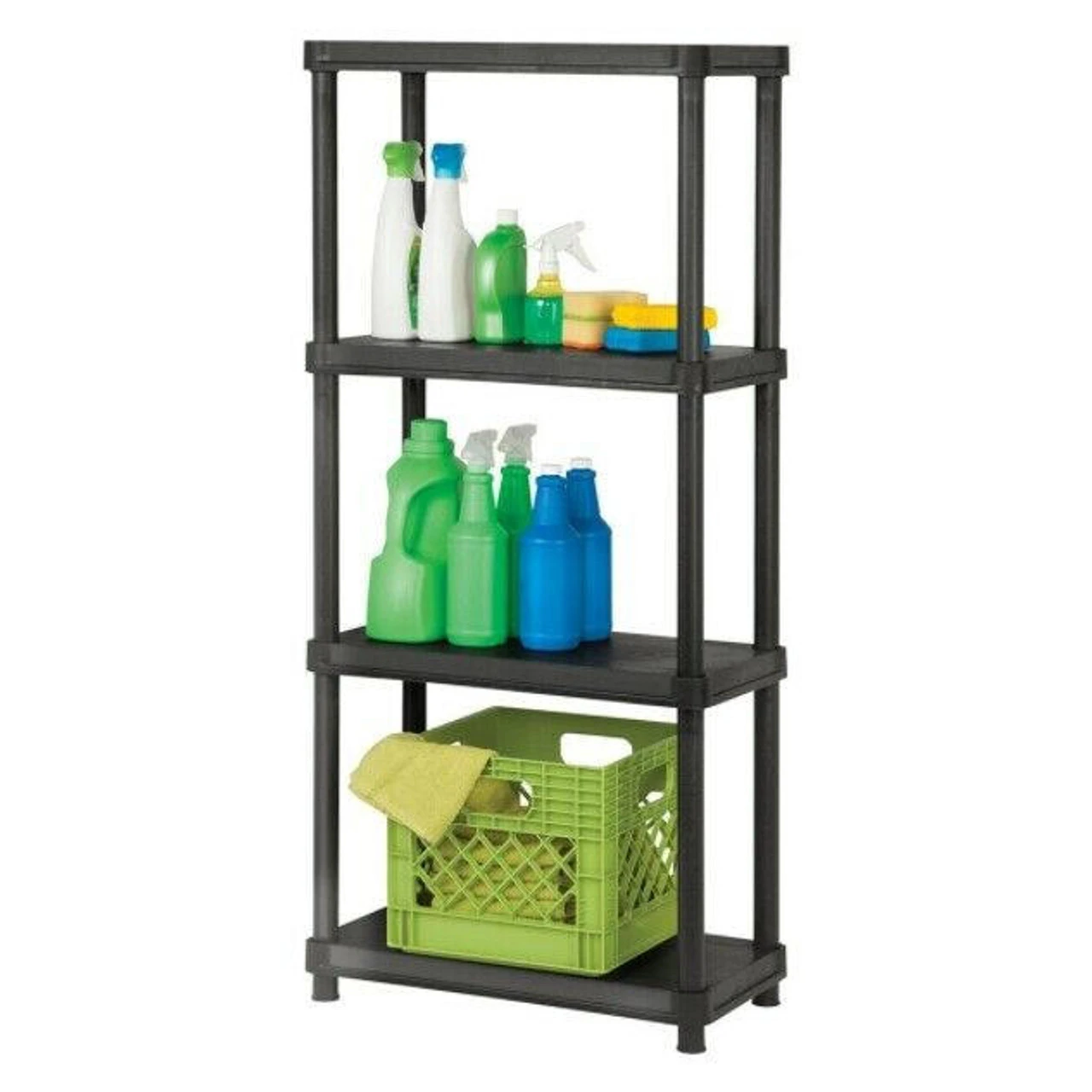 - Includes 4-Tier 12″ x 24″ Resin Shelving System