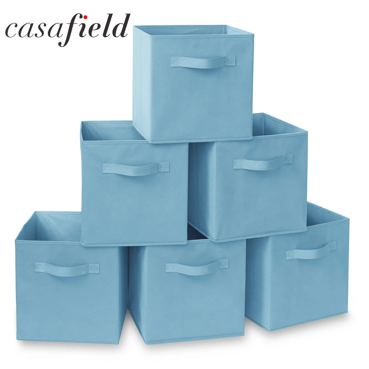 6 Collapsible Foldable Cloth Fabric Cubby Cube Storage Bins Baskets for Shelves