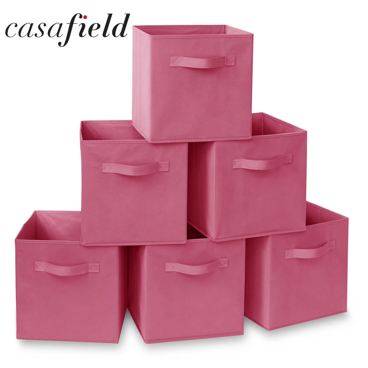 - SET OF 6 STORAGE CUBES: Includes six light pink collapsible fabric storage cubes.