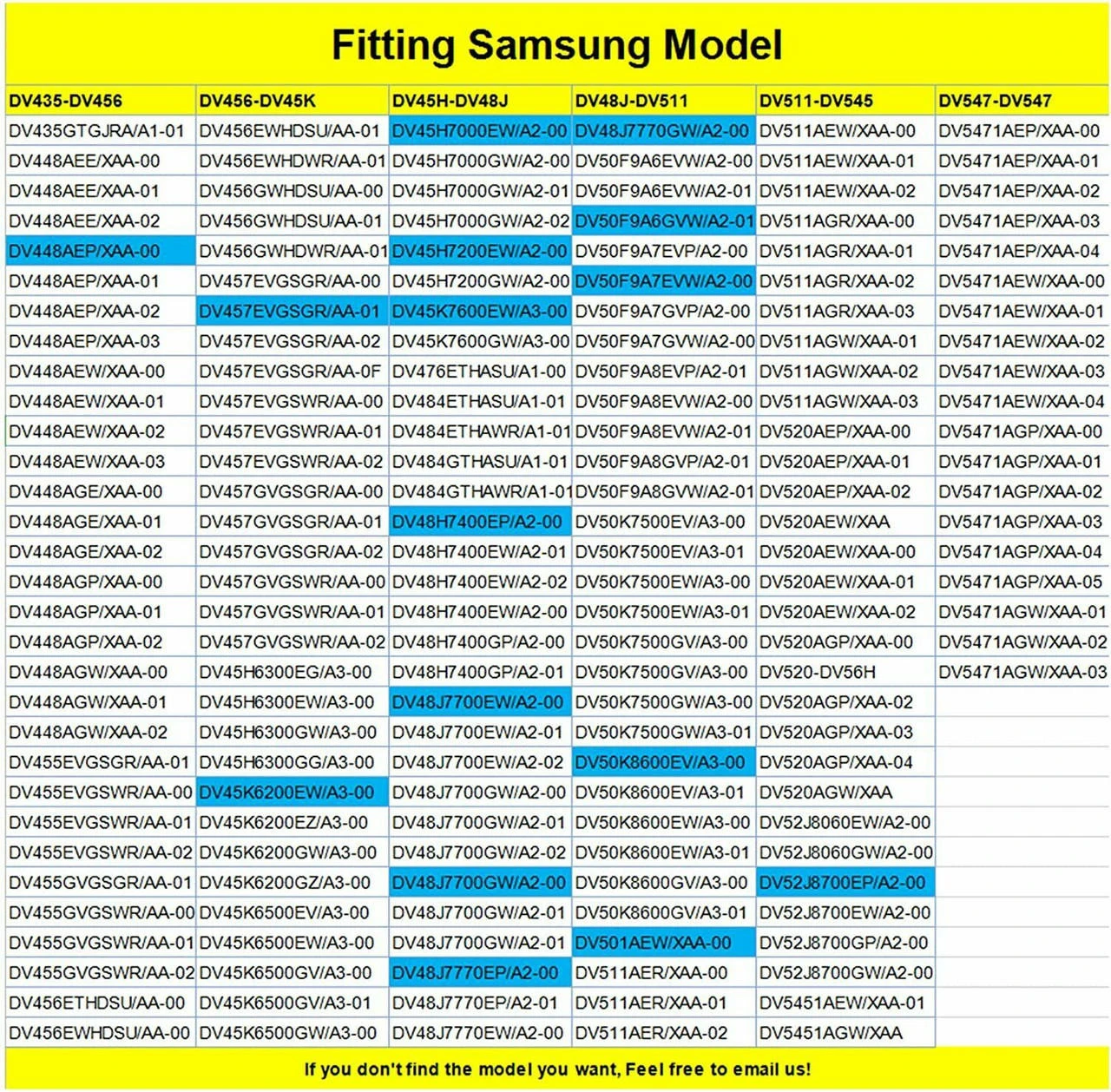 Fit Model Samsung Dv45h7000ew A2, Dv42h5000ew A3, Dv42h5200ep A3, Dv45k7600ew A3, Dv48h7400ew A2, Dv45k6200ew A3, and more.