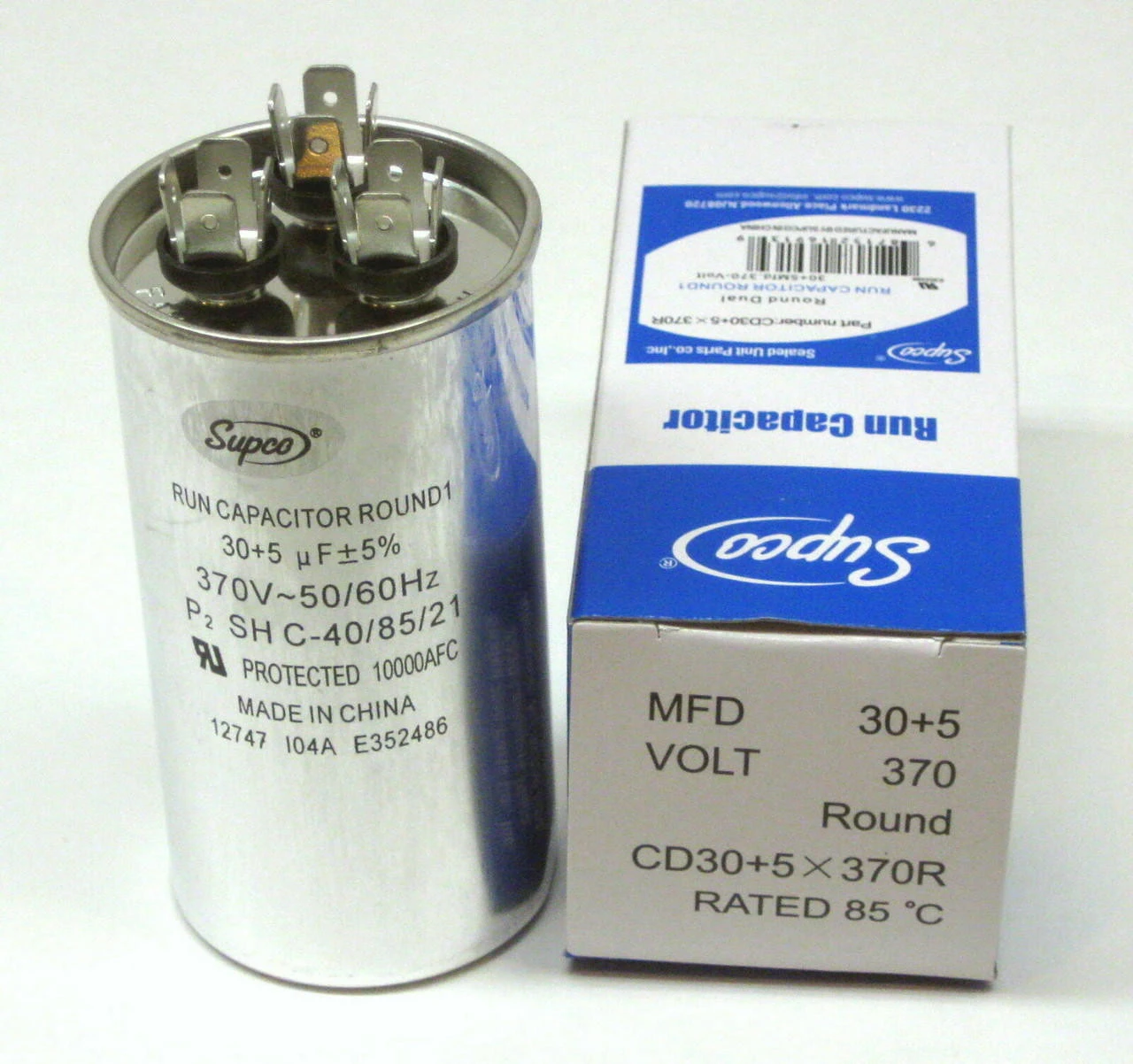 Air Conditioning HVAC Round Dual Motor Run Capacitor 30 + 5 MFD 370 Volt