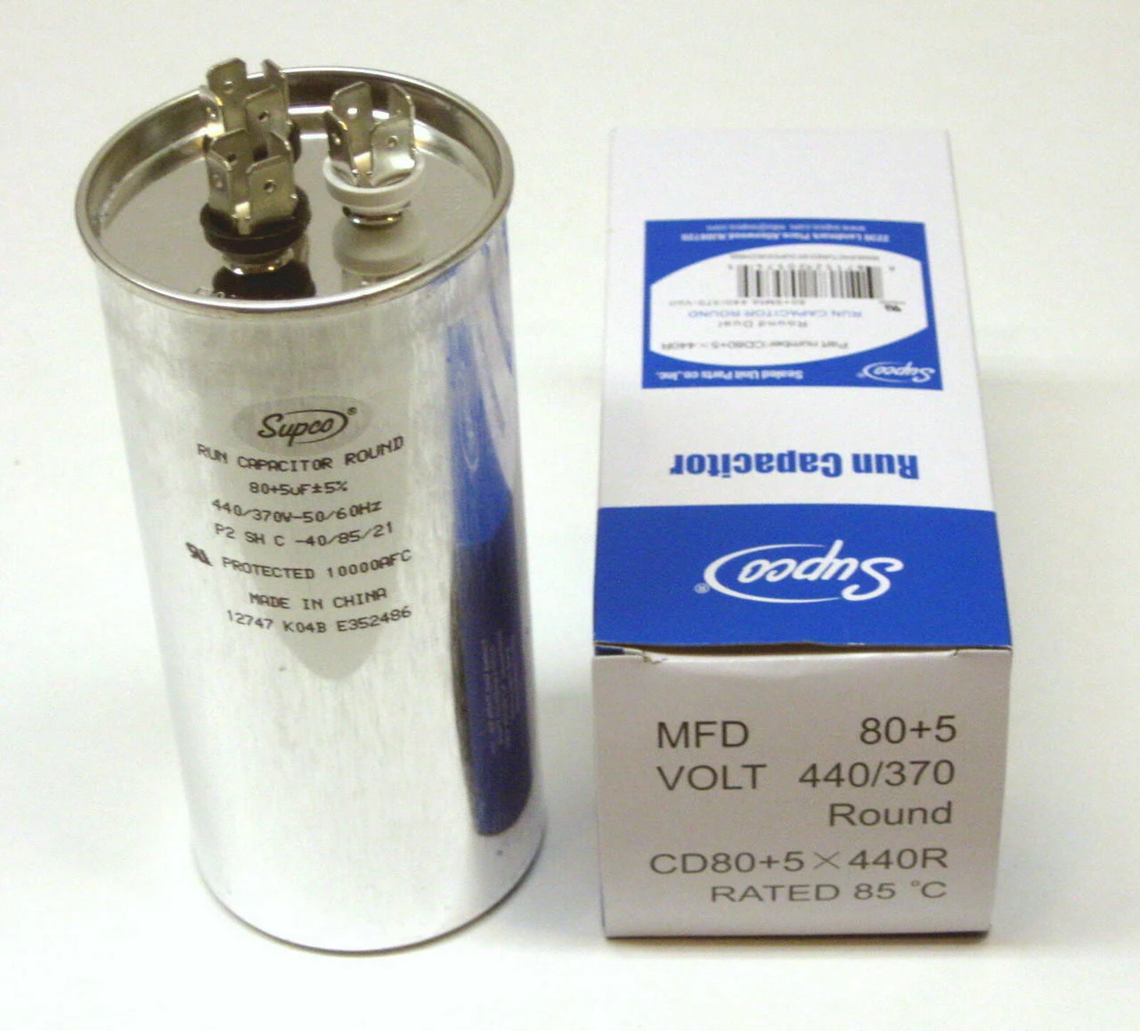 Air Conditioning HVAC Round Dual Motor Run Capacitor 80 + 5 MFD 440 Volt