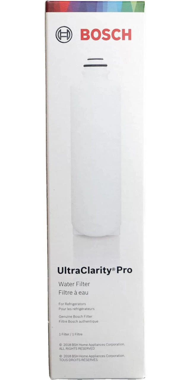 Bosch Refrigerator Water Filter, also known as the Bosch Ultra Clarity Pro Refrigerator Filter, is an internal water filter that channels clean and better tasting ice and water through your Bosch refrigerator. The Bosch refrigerator filter replacement is used primarily to reduce the bad taste and odor of chlorine.