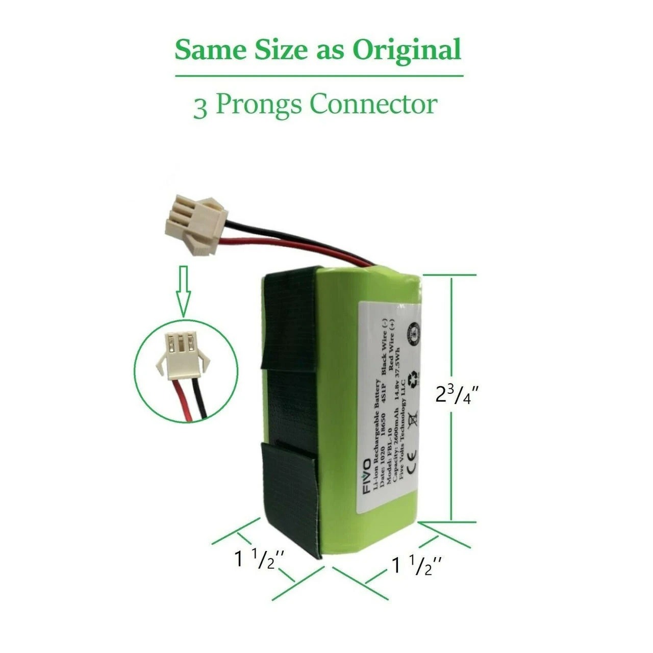 - 14.8v 2600mAh with 3 prongs and 2 wires, same voltage, battery capacity and size compare with original battery.