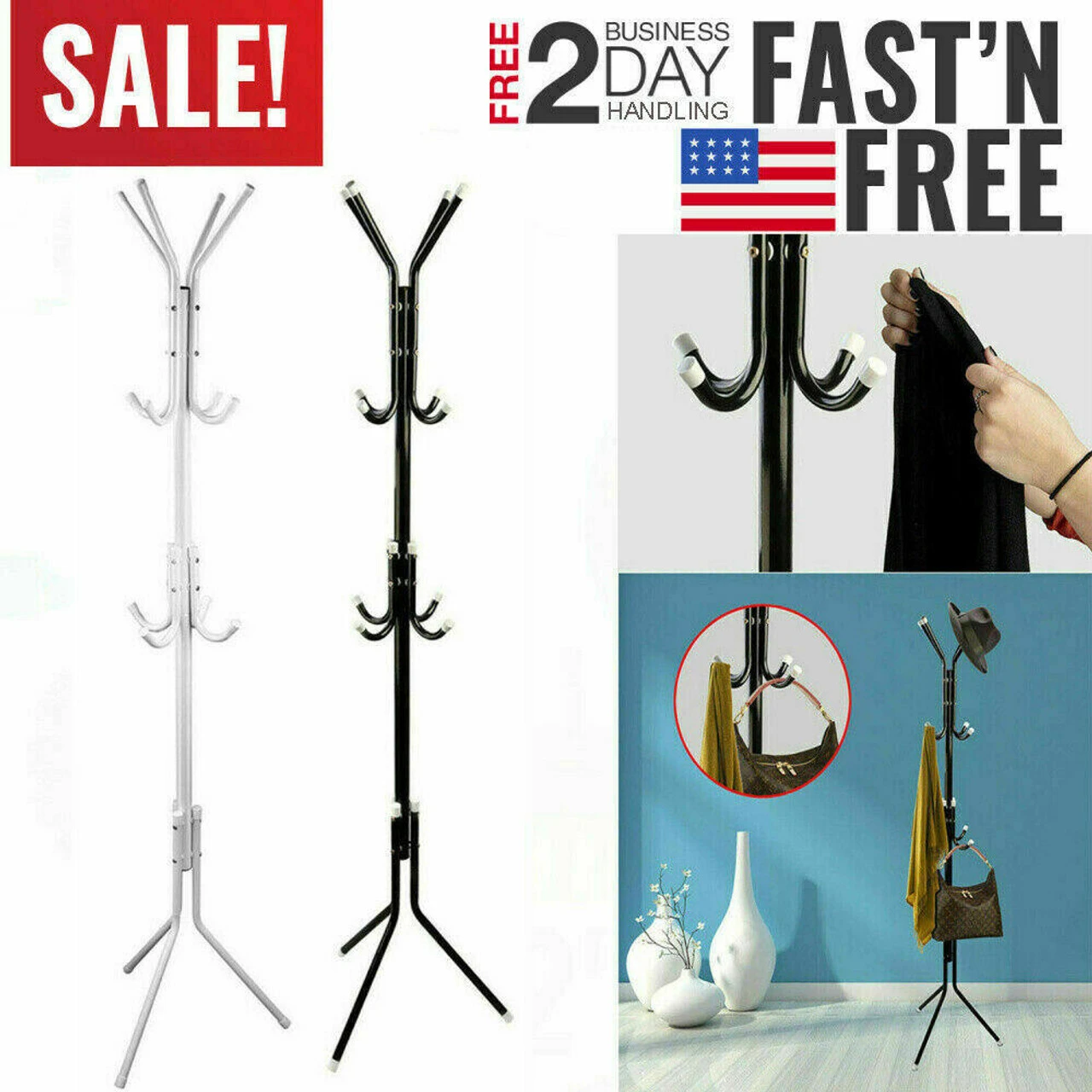 12 Hooks Metal Coat Rack Clothes Hat Bag Hanger Tree Stand Umbrella Holder 3Tie