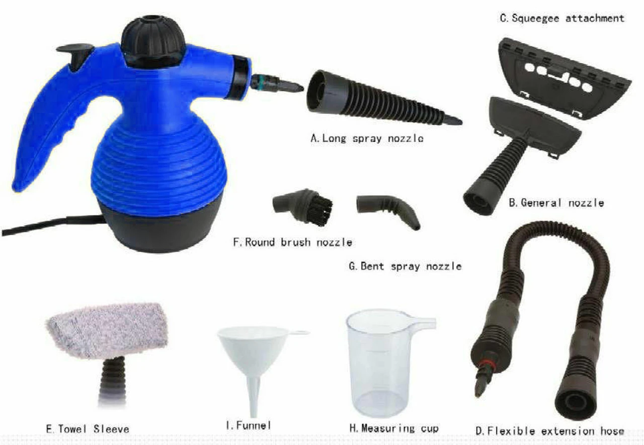 - Multi-purpose handheld steamer for deep cleaning throughout the house