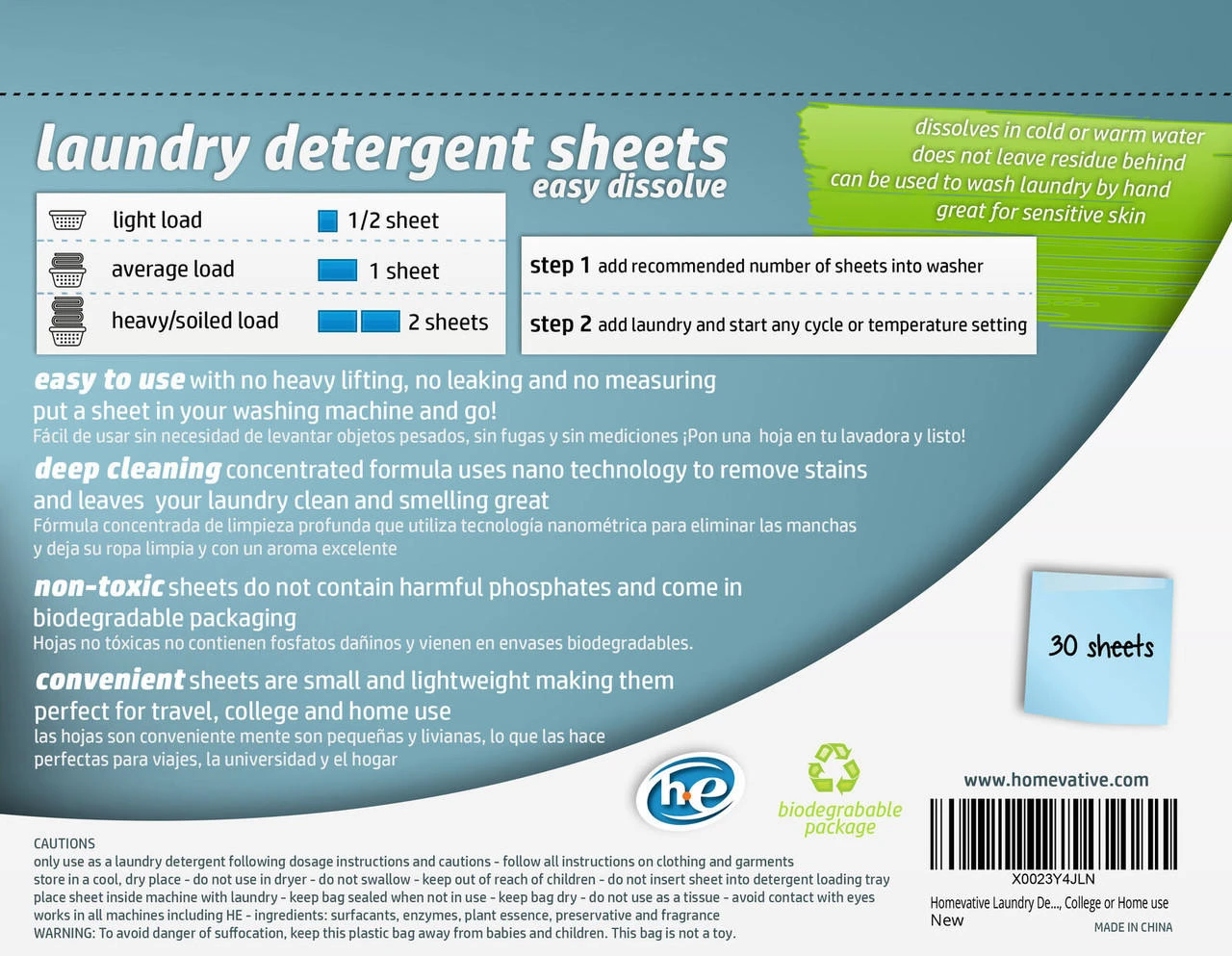 Homevative Laundry Detergent Sheets, Easy dissolve, 30 count