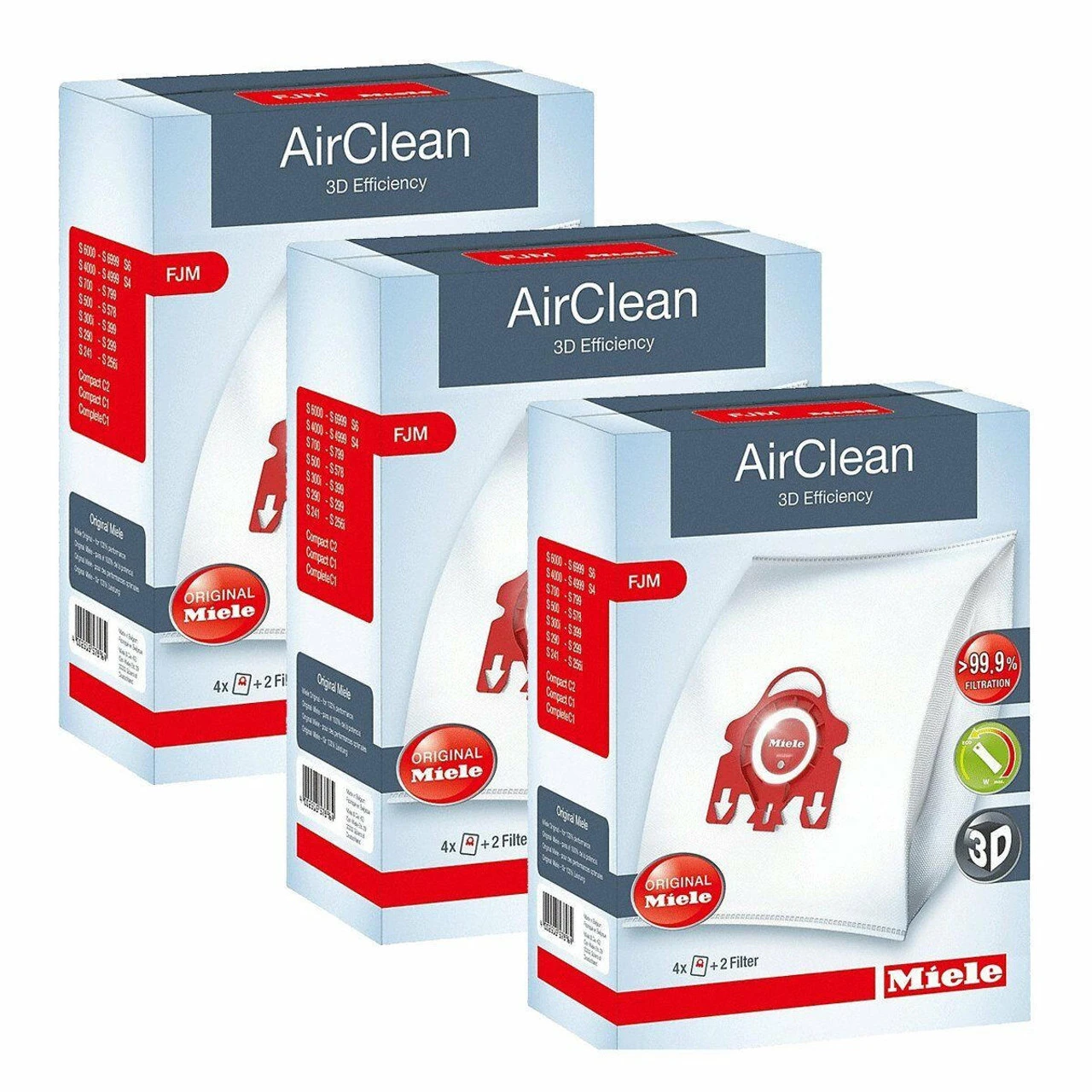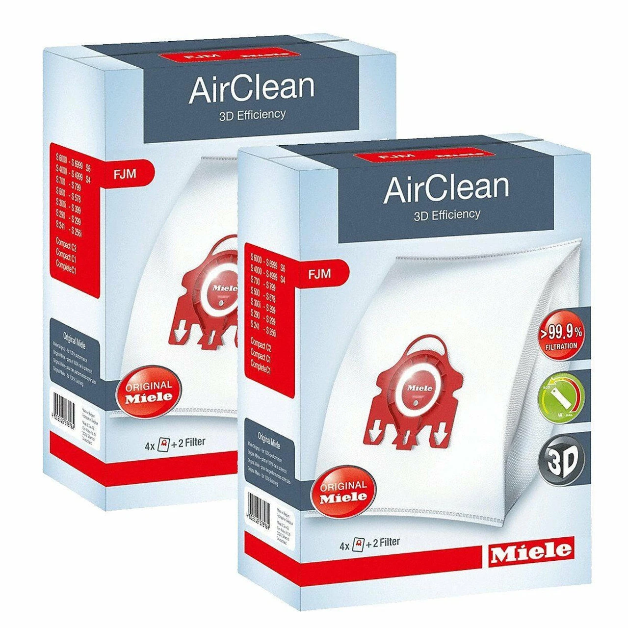Miele FJM Vacuum Bags – 3D AirClean – 4 HEPA Bags & 2 Filters Per Box
