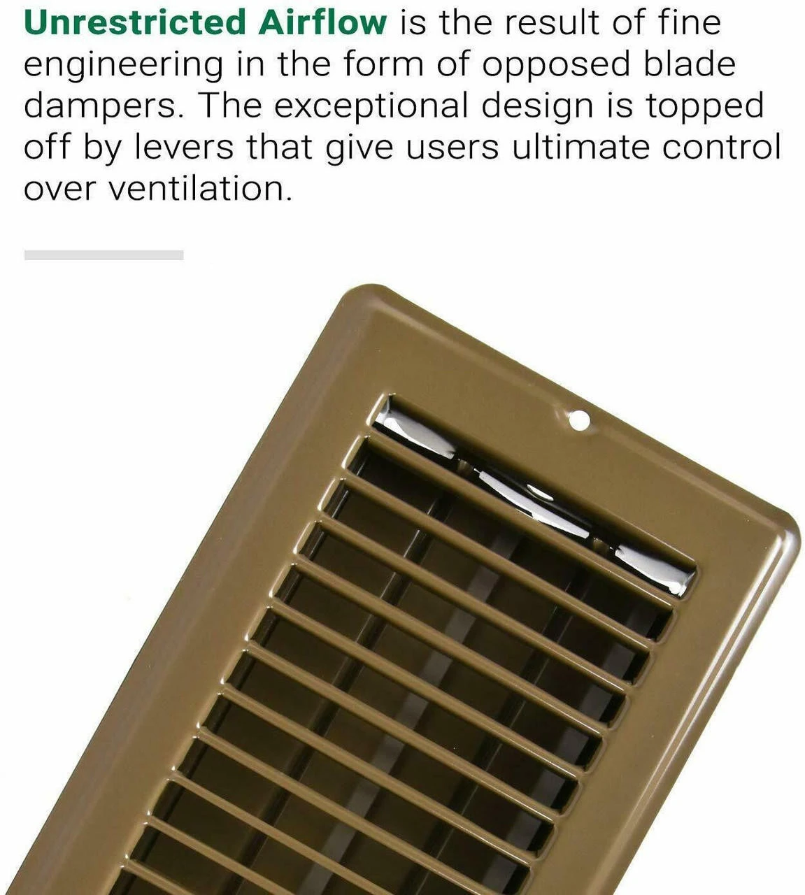 Mobile Home Floor Register 4 x 8 Brown w/ damper 6-pack