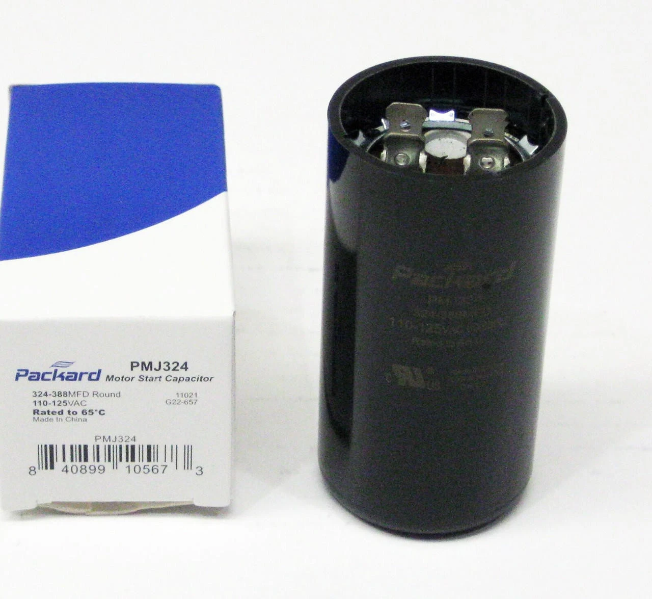 Packard PMJ324 Motor Start Capacitor. 324-388 MFD UF / 110-125 VAC