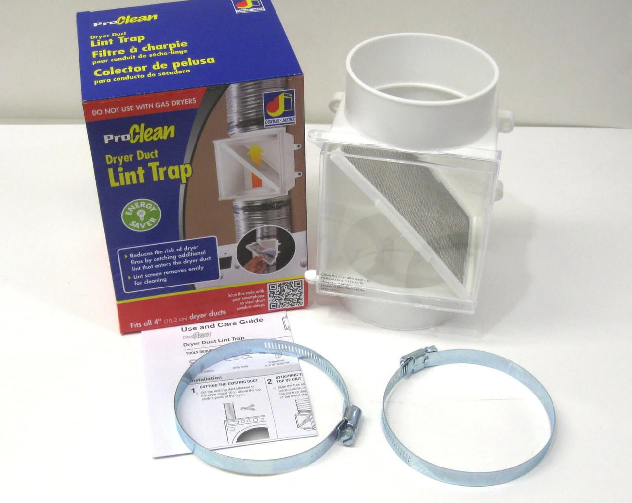 The Dundas Jafine ProClean Dryer Duct Lint Trap number PCLT4WZW acts as a secondary lint trap for your electric clothes dryer and is not intended for use with gas clothes dryers. It installs easily onto your dryer transition duct and collects additional lint that is not captured by the standard dryer lint trap.