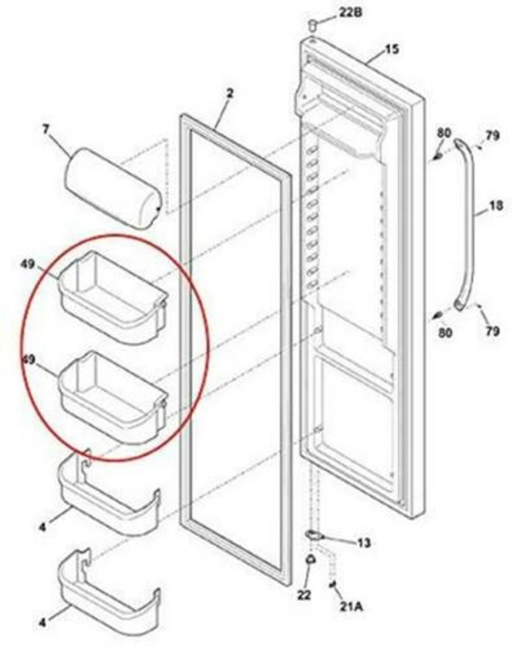 This is for the top 2 shelves on refrigerator side of side by side refrigerator models.