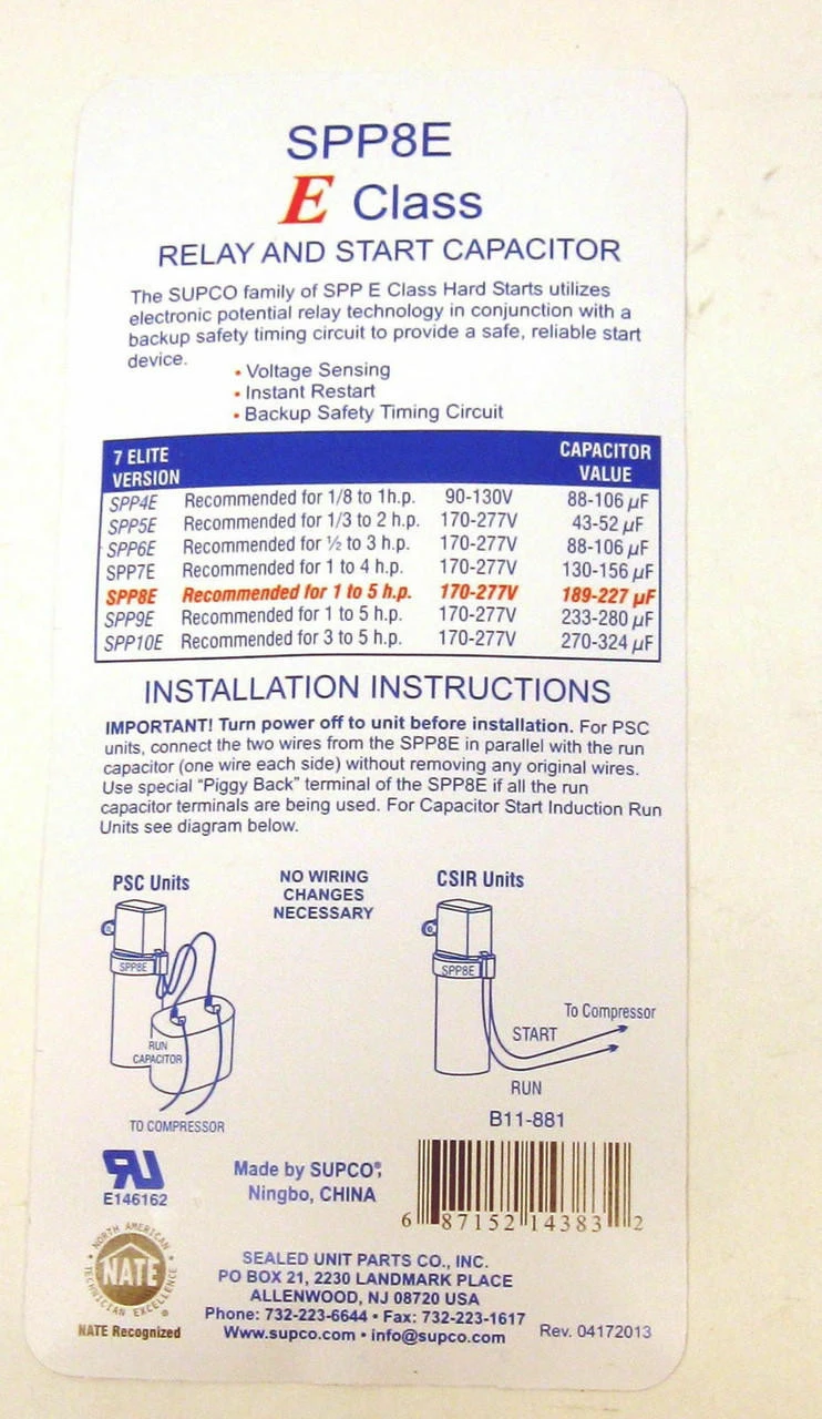 Supco Super Boost E Class SPP8E Electronic Relay Start Capacitor