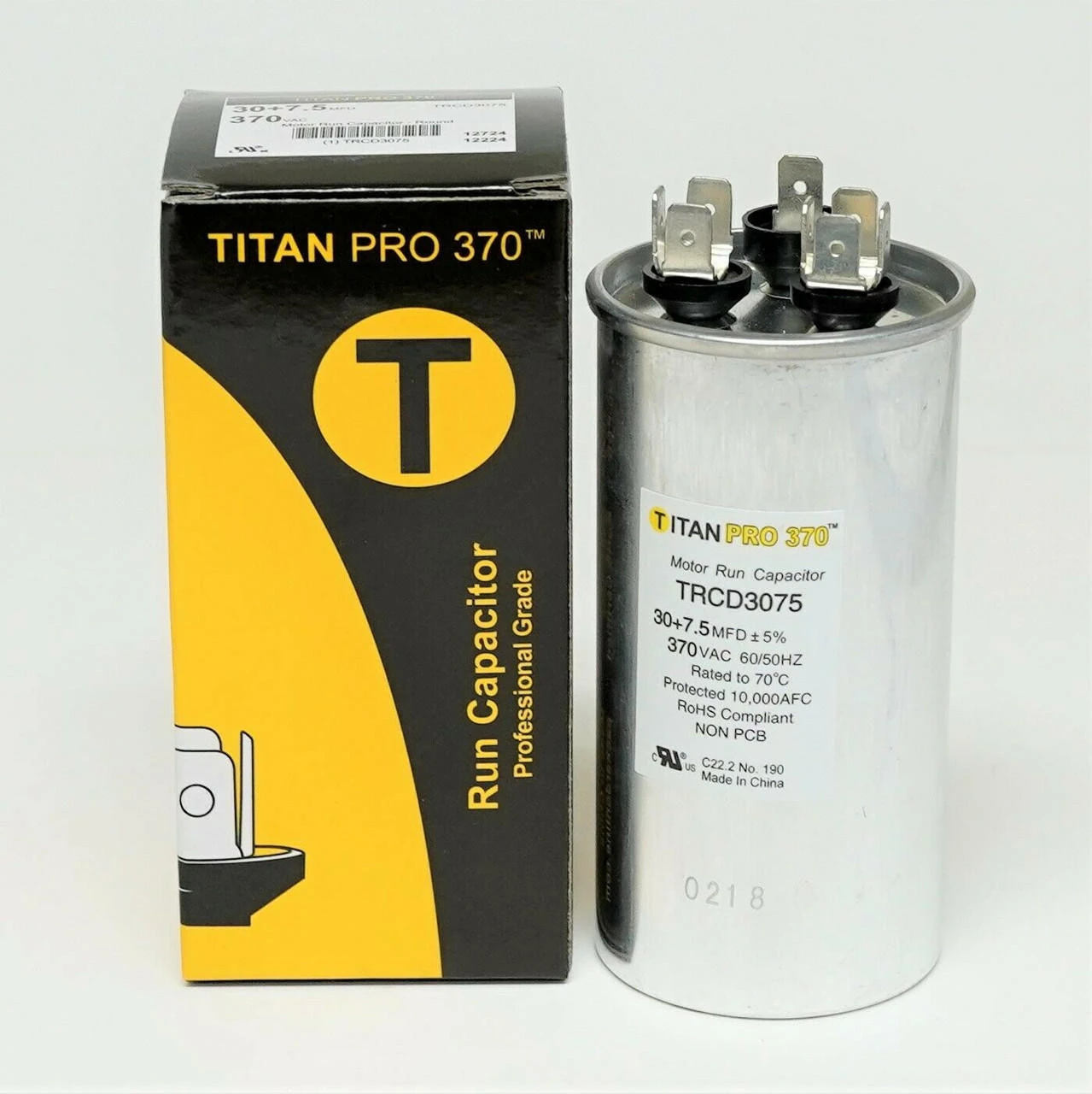 TitanPro TRCD3075 HVAC Round Dual Motor Run Capacitor. 30/7.5 MFD/UF 370 Volts