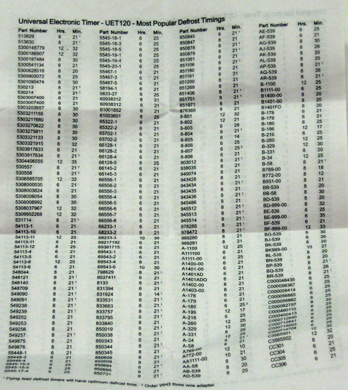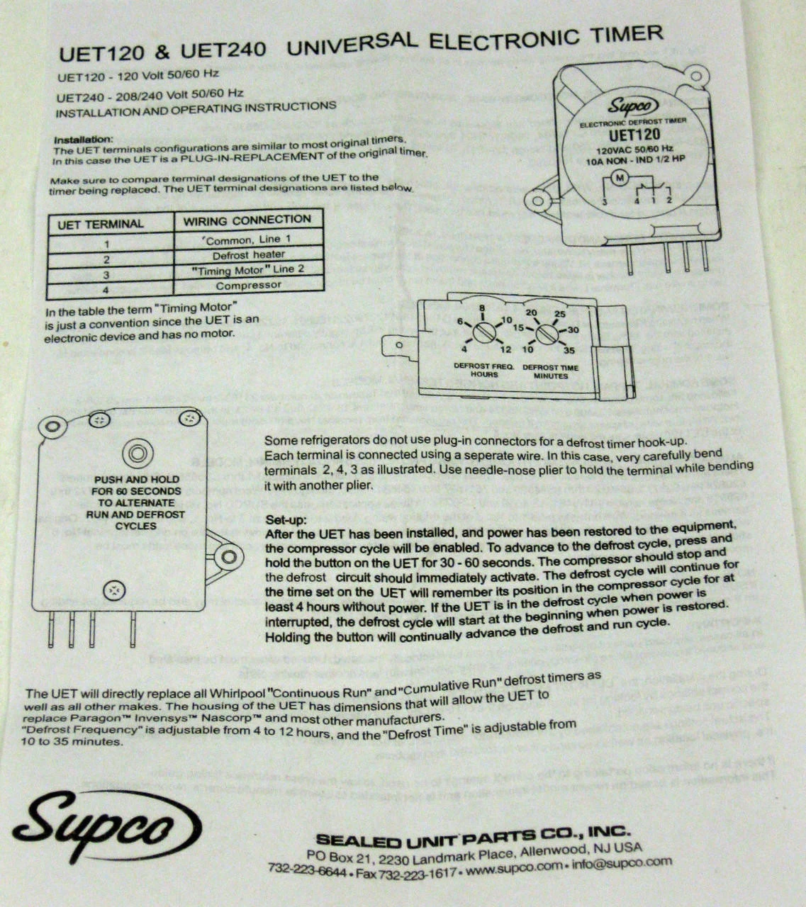 UET120 SUPCO Refrigerator Defrost Timer Control Universal 120 Volt Electronic