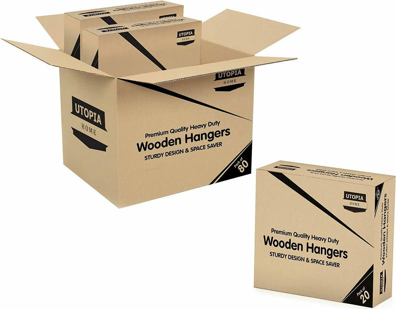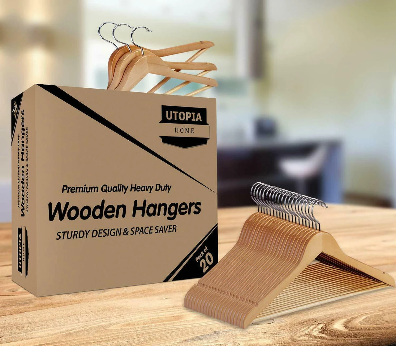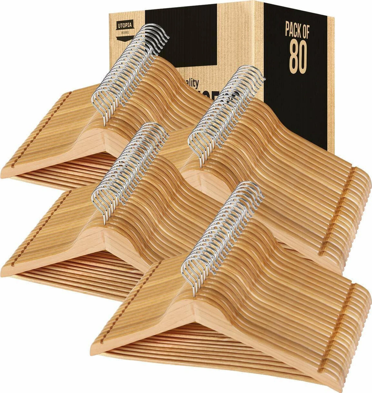 Utopia Home Wooden Hangers Pack of 20 & 80 Suit Hangers Premium Natural Finish