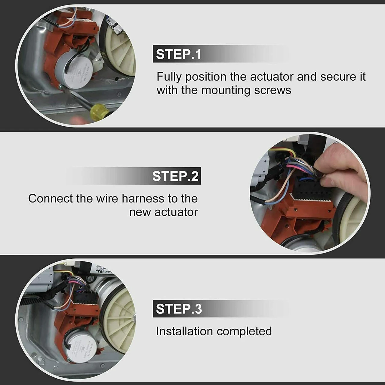 | Premium QualityThe replacement part is made of high-quality durable materials and the drive motor has been updated for longer service life. Rigorously tested by the manufacturer that ensure it replaces perfectly the originals and keep long-lasting performance for your washer. | Easy to InstallTo repair, ensure washer is unplugged and water is turned off. Tip the washer over to access the bottom. The shift actuator is mounted next to the motor with two screws and one wiring plug. Install the part by yourself and quickly get your washer back to work. (Easy to DIY according to relevant YouTube videos) |