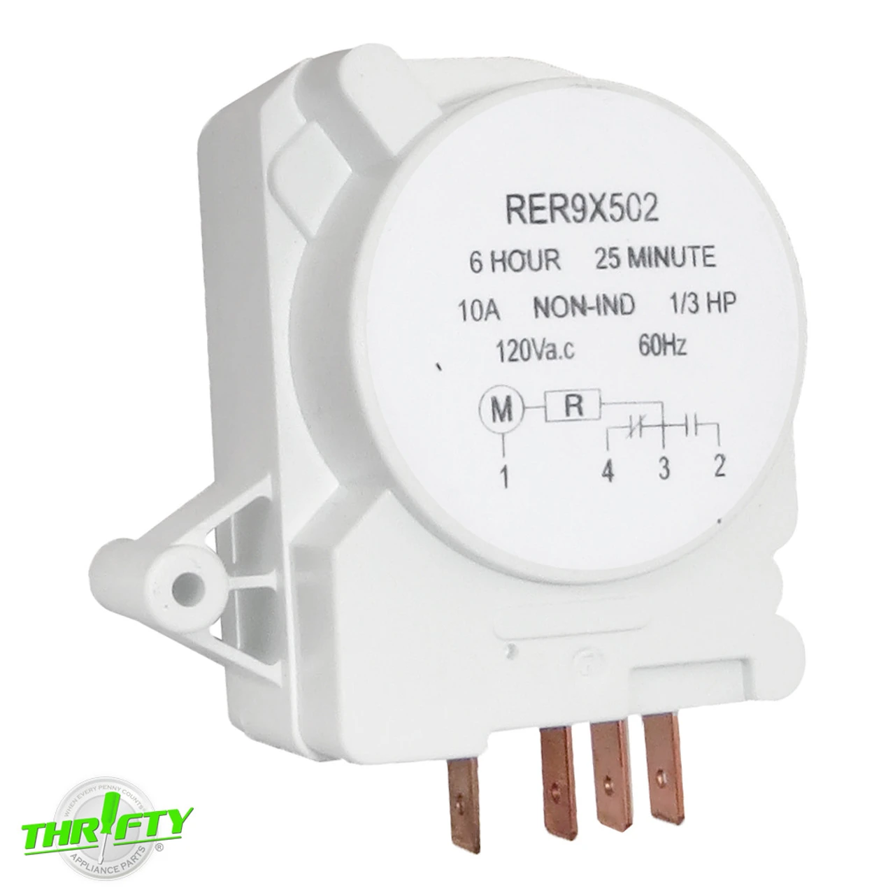 Replacement defrost timer used for some GE, Hotpoint, and Kenmore refrigerator models.